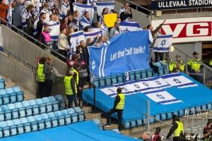 挪威5比0以色列比賽中兩隊(duì)球迷打出的橫幅