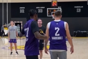 哥倆好!東契奇和范德比爾特隊內訓練時互換球衣
