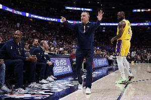 體育資訊10月16日訊 今日,前掘金主帥馬龍?jiān)贓SPN賽前節(jié)目中談到了湖人前鋒詹姆斯。