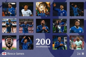 切爾西官推曬出海報(bào),并寫(xiě)道:“200場(chǎng)里程碑取得進(jìn)球,里斯-詹姆斯是純血切爾西人。”