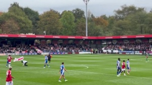 現(xiàn)場(chǎng)視頻顯示,在這場(chǎng)英乙聯(lián)賽中,一群男子沖入球場(chǎng),導(dǎo)致比賽暫停。他們似乎穿著背后印有“加里-內(nèi)維爾是叛徒”的白色連帽衫,并手持英格蘭國(guó)旗。其中一名嫌疑人還試圖將一面英格蘭國(guó)旗插在球場(chǎng)中央。安保人員迅速將他們拖離球場(chǎng),并在比賽暫停期間處理了此事。