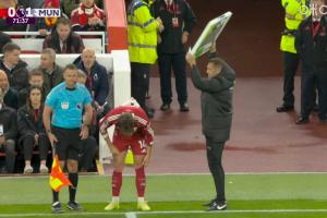 體育資訊10月20日訊 利物浦vs曼聯(lián)第72分鐘,基耶薩登場(chǎng)換下伊薩克。此時(shí)比分仍然是利物浦0-1曼聯(lián)。