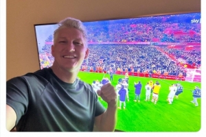 曼聯(lián)舊將、德國足壇名宿施魏因斯泰格通過電視觀看雙紅會,賽后他曬出自己在電視機前的照片,配文:“簡直太美妙了!加油曼聯(lián),多么精彩的比賽!”