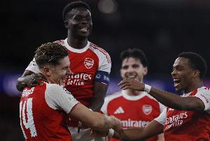 阿森納在酋長(zhǎng)球場(chǎng)以一場(chǎng)統(tǒng)治性表現(xiàn)擊敗馬德里競(jìng)技,歐冠繼續(xù)保持全勝。約克雷斯梅開二度,加布里埃爾頭球破門,馬丁內(nèi)利精彩終結(jié),這場(chǎng)4-0的勝利讓阿爾特塔的球隊(duì)三戰(zhàn)積九分。盡管最終比分懸殊,但半場(chǎng)結(jié)束時(shí)仍是0-0,埃澤的折射擊中橫梁,拉亞的失誤險(xiǎn)些讓馬競(jìng)進(jìn)球。下半場(chǎng)阿爾瓦雷斯遠(yuǎn)射擊中橫梁,但隨后阿森納在14分鐘內(nèi)連入四球。