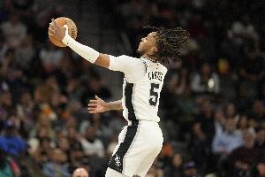 至此,卡斯?fàn)栆渤蔀樽?020年的德羅贊和德章泰-穆雷之后,首位在賽季揭幕戰(zhàn)得到20分5籃板5助攻的馬刺球員。