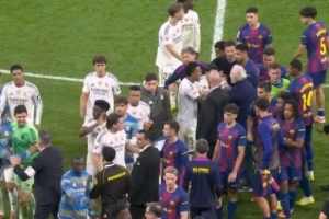 國(guó)家德比,皇馬在主場(chǎng)2-1擊敗巴薩。本場(chǎng)比賽堪稱(chēng)火花四濺,要素拉滿(mǎn):賽前放話、紅牌、進(jìn)球、點(diǎn)球、失點(diǎn)、賽后沖突一樣不缺。