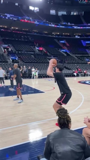 今天能進(jìn)首個(gè)三分嗎?楊瀚森熱身三分訓(xùn)練手感柔和只投丟一個(gè)