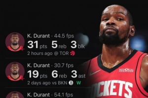 據(jù)統(tǒng)計(jì),杜蘭特火箭生涯4場(chǎng)比賽得分破百,隊(duì)史第二快,僅次于哈登(3場(chǎng))。