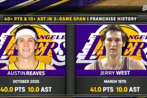 里夫斯三場比賽場均40分10助 湖人隊史第二人&比肩杰里-韋斯特