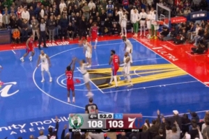 埃奇庫姆和恩比德二人轉(zhuǎn) 接他傳球三分再中76人8-0分差縮小至2分