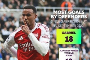 體育資訊9月29日訊 數(shù)據(jù)顯示,自2020年9月上演英超首秀以來,阿森納后衛(wèi)加布里埃爾已成為同期聯(lián)賽中進球最多的后衛(wèi),以18粒進球高居榜首。