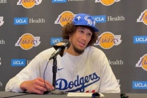 昨天洛杉磯道奇奪冠,完成衛(wèi)冕。海斯今天賽后穿了一件道奇的球迷參加采訪。