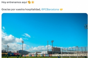體育資訊11月3日訊 西甲埃爾切官推曬出一張球隊(duì)借用巴薩訓(xùn)練基地訓(xùn)練的照片,配文寫(xiě)道:“今天我們?cè)谶@里訓(xùn)練,感謝巴薩俱樂(lè)部的慷慨??”