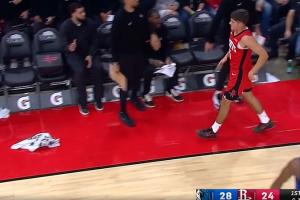 防不住就算了!謝潑德大空位扔出過橋!隨后被換下!