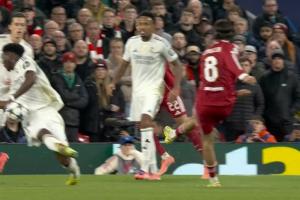 體育資訊11月05日訊 利物浦vs皇馬第31分鐘,索博打門擊中瓊阿梅尼手臂,裁判檢查點(diǎn)球,VAR介入。