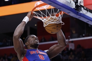 活塞內(nèi)線杜倫上半場表現(xiàn)不錯(cuò),尤其是第二節(jié)在球隊(duì)落后時(shí),他在內(nèi)線表現(xiàn)活躍,不僅有空接暴扣,還有搶下前場籃板后的暴扣,幫助球隊(duì)縮小分差。