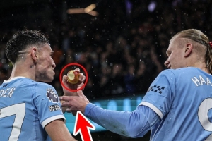 另類慶祝!多庫破門之后,哈蘭德與福登吃蘋果慶祝