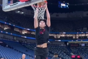 今天有機(jī)會(huì)嗎?楊瀚森賽前熱身秀各種扣籃 三分球也信手拈來(lái)