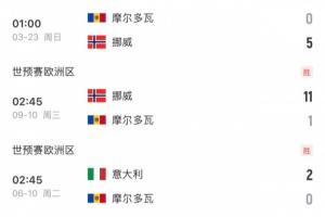此外,在雙方首回合交手中,挪威主場3-0完勝意大利,凈勝球方面又拉開6球差距。