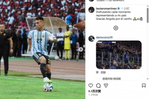 體育資訊11月15日訊 在友誼賽2-0戰(zhàn)勝安哥拉后,阿根廷前鋒勞塔羅在社交媒體上曬圖,慶祝球隊獲勝。