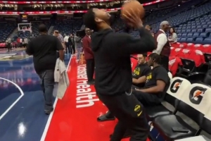徐杰向孩子們強(qiáng)調(diào):訓(xùn)練基本功時一定要保持專注 空籃一定要上進(jìn)