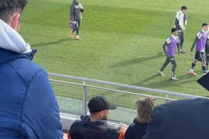 曾效力于皇馬的阿扎爾來到現(xiàn)場,觀看皇馬C隊的比賽。阿扎爾2019年到2023年期間效力皇馬,出戰(zhàn)76場比賽7球12助。