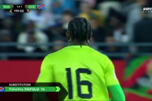 此役兩隊(duì)在常規(guī)時(shí)間120分鐘內(nèi)打成1-1平,民主剛果專門換門將迎接點(diǎn)球大戰(zhàn),法尤魯替補(bǔ)登場。