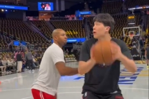 今天能有多少時間?楊瀚森賽前熱身 對抗后勾手+暴扣 三分7中7