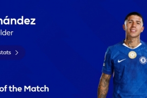 本場比賽恩佐在最后時刻破門鎖定勝局,賽后他也當選英超官方球迷票選全場最佳球員。