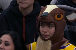 真愛(ài)!女球迷身穿詹姆斯球衣戴著山羊帽寓意其是GOAT