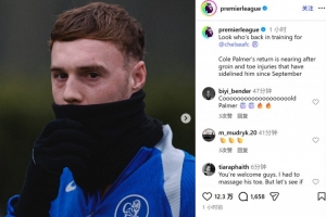 在周一的新聞發(fā)布會上,切爾西主帥馬雷斯卡表示:"我們不確定具體時間,但帕爾默肯定很快就能回歸。他已經踏上草坪進行有球訓練,目前感覺良好。"