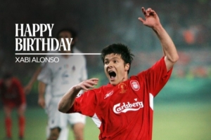 利物浦官方曬海報(bào)為哈維·阿隆索慶生,海報(bào)內(nèi)容為2004-05賽季歐冠決賽利物浦擊敗米蘭奪冠的比賽圖。
