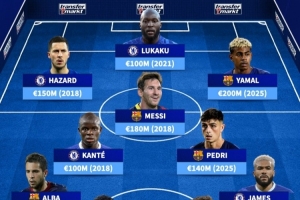 體育資訊11月26日訊 北京時間今晚凌晨4點(diǎn),歐冠聯(lián)賽階段第5輪,切爾西主場迎戰(zhàn)巴薩。賽前,德轉(zhuǎn)評出這兩支球隊(duì)歷史最貴11人陣容,其中梅西、亞馬爾領(lǐng)銜鋒線,阿扎爾、盧卡庫在列。這套陣容的總身價達(dá)12.5億歐元。