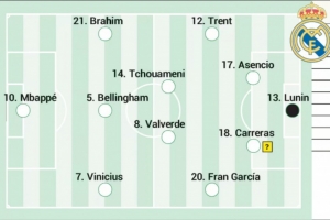 西班牙媒體《阿斯報》預(yù)測了皇馬此役的首發(fā)陣容,姆巴佩領(lǐng)銜,維尼修斯、迪亞斯、阿諾德在列。