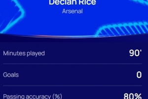 本場(chǎng)比賽賴(lài)斯發(fā)揮出色,傳球成功率80%,跑動(dòng)覆蓋11.9km,賽后他當(dāng)選歐冠官方評(píng)選出的本場(chǎng)最佳球員。