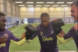 埃弗頓前鋒蒂爾諾·巴里在社媒曬出視頻,蓋耶與基恩手戴拳套,在裁判貝托的見證下,進(jìn)行了一場(chǎng)“和好拳擊賽”。