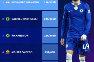 南美球員最年輕達(dá)成英超百場(chǎng)排名: