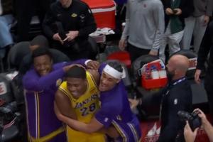 笑死!八村壓哨三分絕殺后徑直跑回更衣室 被海斯&布朗尼等人抓回