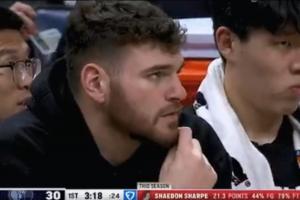 表現(xiàn)不理想!轉(zhuǎn)播鏡頭給到克林根 楊瀚森在一旁抿嘴&表情嚴(yán)肅