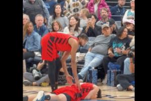 楊瀚森遭遇包夾被埃迪打到面部痛苦倒地 在地上躺了半天沒起來