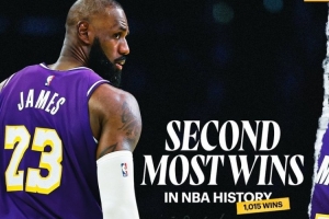 體育資訊12月8日訊 NBA常規(guī)賽,湖人客場112-108擊敗76人。詹姆斯收獲了他生涯第1015場常規(guī)賽勝利,獨居歷史第二。