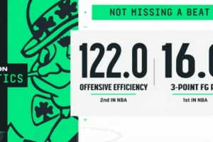底蘊(yùn)!單探花綠軍本季場(chǎng)均16記三分聯(lián)盟第一 進(jìn)攻效率122聯(lián)盟第二