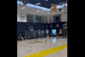 東契奇訓(xùn)練結(jié)束之后的固定節(jié)目,投射中場三分