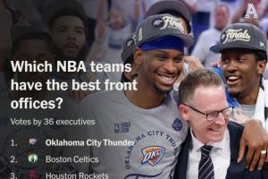 體育資訊12月10日訊 The Athletic邀請(qǐng)了聯(lián)盟中的36位高管對(duì)聯(lián)盟中各支球隊(duì)的管理層進(jìn)行了排名,雷霆管理層連續(xù)兩年排名第一。