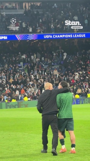 體育資訊12月11日訊 歐冠第6輪曼城客場2-1逆轉(zhuǎn)擊敗皇馬,賽后瓜迪奧拉被拍到與弟子謝爾基親切交流。