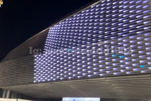 體育資訊12月13日訊 有馬德里當(dāng)?shù)夭┲鲿癯霎嬅?,皇馬主場伯納烏球場正在夜晚進(jìn)行外景的燈光測試。