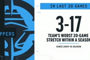 快船近20場戰(zhàn)績?yōu)?勝17負(fù) 創(chuàng)球隊近15年連續(xù)20場最糟糕戰(zhàn)績