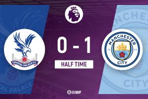 上半場傷停補時3分鐘,半場結(jié)束,曼城暫1-0水晶宮。