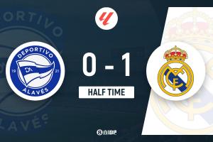 上半場(chǎng)傷停補(bǔ)時(shí)2分鐘,半場(chǎng)結(jié)束,皇馬暫1-0阿拉維斯。