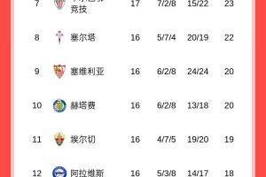 西甲積分榜:皇馬止連敗暫升第二,落后巴薩4分